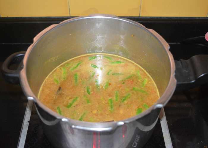 - Cook on high heat until 2 or 3 whistles and simmer for 20 minutes. Turn off the heat.