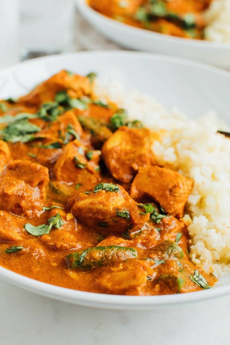 Butter chicken is one of the most popular Indian curry dishes. Similar to chicken tikka masala, it's chunks of tender chicken breast simmered in an aromatic sauce of tomatoes and cream. This slow-cooker dairy-free butter chicken is a much lighter version. Heavy cream and butter are replaced with coconut milk and coconut oil.