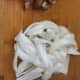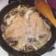 - While the breasts are cooking, chop up your onion and mushrooms into large pieces (about the size of a single piece of penne pasta) and add to the pan.