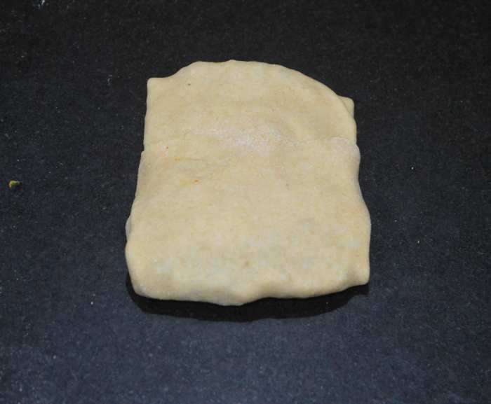 - You should now have a rectangle-shaped stuffed paratha.